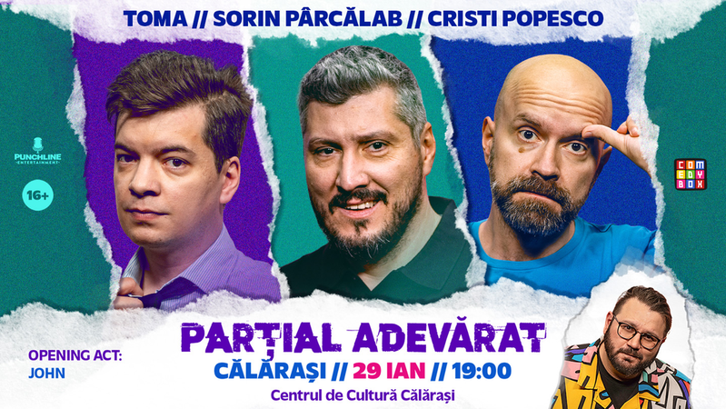 Calarasi: Stand-up Comedy cu Sorin Pârcălab, Toma și Cristi Popesco | PARȚIAL ADEVĂRAT