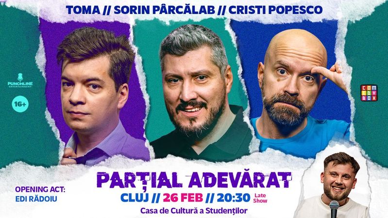 Cluj-Napoca: Stand-up Comedy cu Sorin Pârcălab, Toma și Cristi Popesco | PARȚIAL ADEVĂRAT - 26 Februarie - Late Show