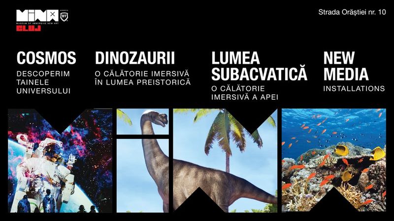 Bucură-te de întreaga experientă MiNA Museum: trei spectacole imersive de excepție care te vor purta într-o călătorie fascinantă prin istoria universului și a vieții pe Pământ și a cosmosului: Dinozaurii - O călătorie imersivă în Lumea Preistorică(~ 22 min) , Lumea Subacvatică, și Cosmos: Descoperă Tainele Universului (~21 min). New Media Art - un labirint de lucrări care utilizează tehnologii de ultimă oră, explorând granițele artei contemporane. Un singur bilet îți oferă acces la toate aceste experiențe incredibile!