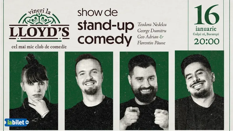 Lloyd's: Stand-up comedy cu Teodora Nedelcu, George Dumitru, Geo Adrian și Florentin Păune