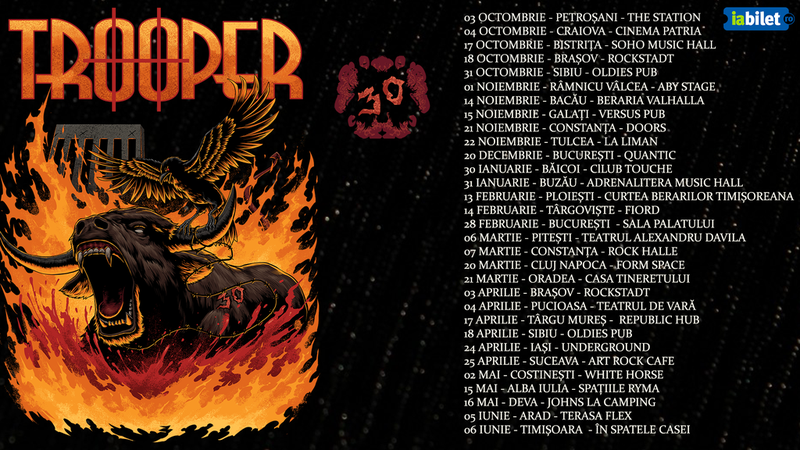 TROOPER este printre cele mai de succes trupe din România, având o carieră de 30 de ani fără pauze, zeci de distincții, zeci de turnee etc. TROOPER a influențat generații întregi de muzicieni și fani. Până în prezent, au lansat 12 albume de studio, au susținut peste 1000 de concerte, au împărțit scena cu Iron Maiden, Scorpions, Judas Priest, Whitesnake, Deep Purple, Europe, Prodigy, Manowar, WASP, Sepultura etc. Fiecare album al formației conține piese care au devenit adevărate imnuri pentru iubitorii de rock - Tari ca munții, Strigăt, Trec anii, Destin, Maturizare, Două roți, Vlad Țepeș, Doar a mea, În ziua a opta, Corupția ucide, Dragoste falsă, O viață este prea mult - toate au trecut testul timpului.