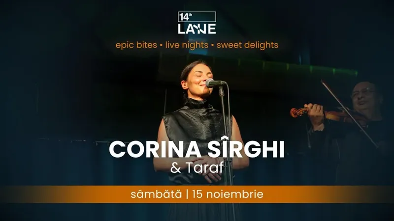 15 noiembrie, ziua când 14th LANE devine locul unde tradiția și emoția se împletesc sub vocea inegalabilă a Corinei Sîrghi și a tarafului ei. Vino să trăiești o seară plină de pasiune, voie bună și ritmuri lăutărești autentice, așa cum doar ea știe să le dăruiască.