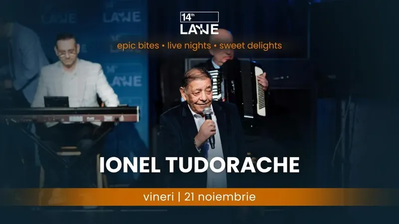 Pe 21 noiembrie, 14th LANE devine gazda unei seri ca-n poveștile lăutărești! Ionel Tudorache și taraful lui îți pregătesc o călătorie muzicală plină de suflet, voie bună și povești cântate din inimă. Fiecare acord de acordeon și fiecare refren vor aduce mai aproape parfumul vremurilor de altădată, condimentat cu energia și umorul de acum.