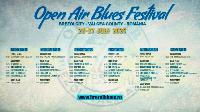 Pentru toți iubitorii de blues din întreaga lume, Open Air Blues Festival Brezoi 2025 va avea loc între 22 și 27 iulie!.