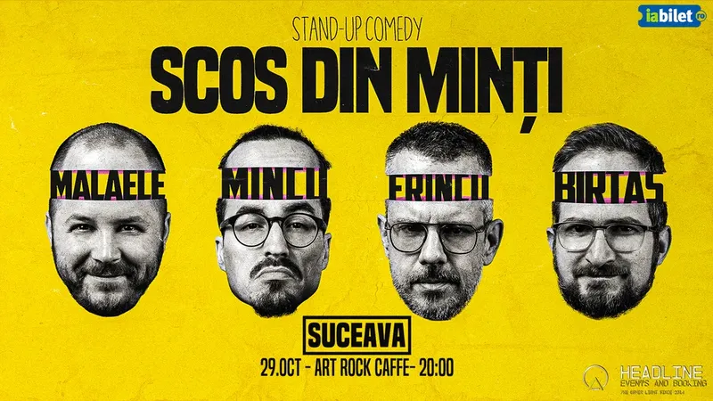 Despre eveniment Suceava: Stand-Up Comedy cu Frînculescu, Mălăele, Mincu și Birtaș - "Scos din minți"