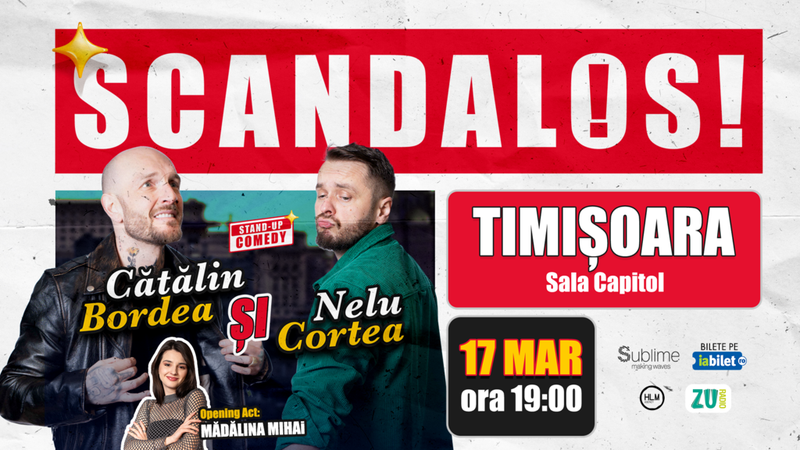 Despre eveniment Timisoara: Stand-up Comedy cu Bordea, Cortea si Madalina Mihai - "Scandalos" - LUNI - ora 19:00