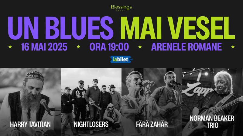 Vino să trăiești o seară de blues, plină de energie și umor! Alături de Harry Tavitian, Nightlosers, Fara Zahar și Norman Beaker Trio veți trăi experiența unică și irepetabilă a unui "blues mai vesel", "de formă hazliu și trist în fond" într-o "țară tristă, plină de humor":